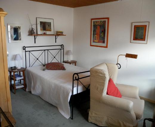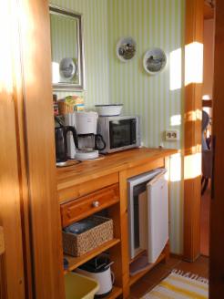 Der Ohrensessel lädt zum Lesen und Entspannen ein. Wer aber Musik hören oder fernsehen möchte, kommt auch nicht zu kurz. Ein Farbfernseher mit Kabelanschluß und DVD-Player und ein Radio/CD-Player sind ebenfalls vorhanden, genauso wie WLAN.